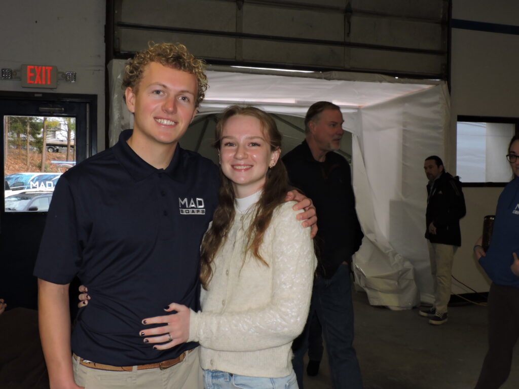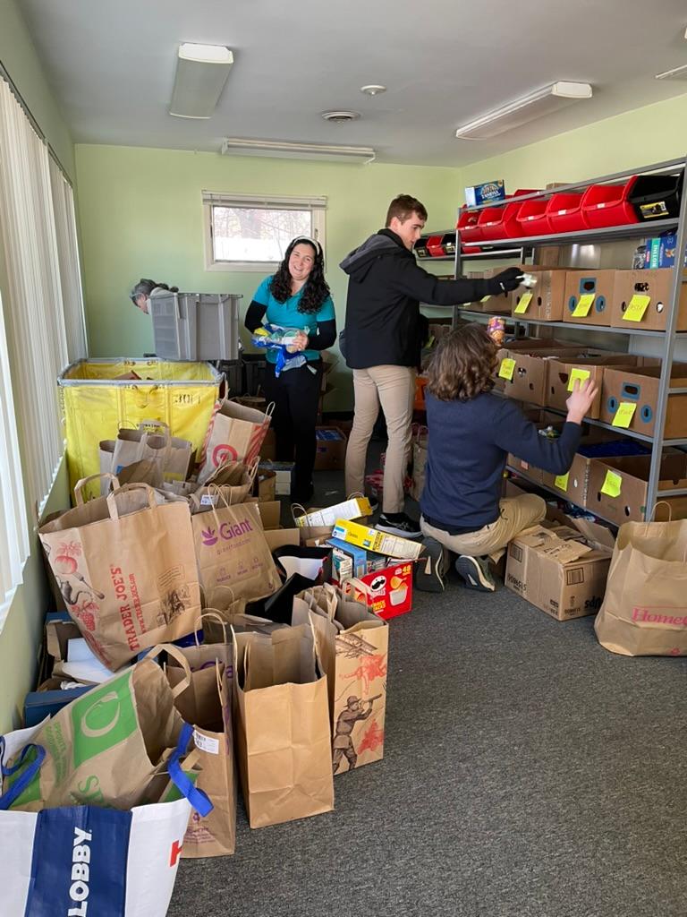 Shay and Hamlett bundled up and delivered boxes and bags full of pantry items to the Anne Arundel County Food Bank drop-off point, then sorted the items.