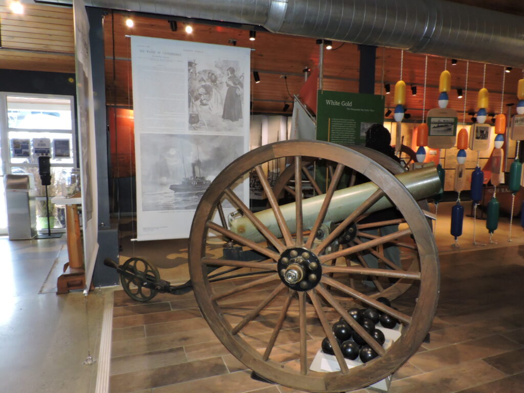 The first exhibit was surprising as it featured a weapon. During the Oyster Wars that followed the American Civil War in the 1860’s-1870’s, when Maryland and Virginia watermen fought over oyster bed areas of the Chesapeake Bay, the Maryland Oyster Police equipped their vessels with weapons including Civil War era cannons like the one seen here. The oysters were so prized they were considered “White Gold”.