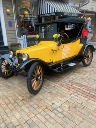 After the Market House events, attendees gathered at Old Fox Books for a talk by author Jeryl Schriever who, with husband Alex Huppe, owns and restored the car.