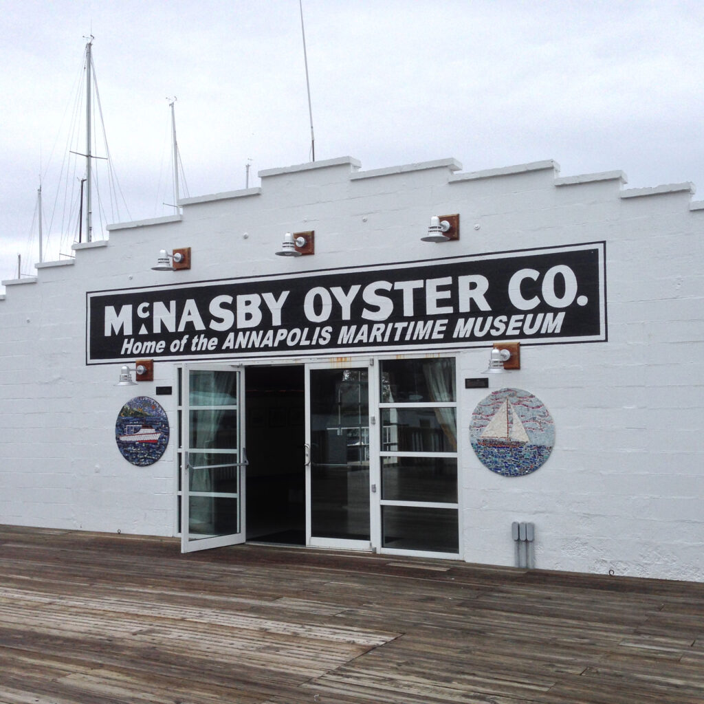 Chatting with a friend who mentioned a great new museum he discovered while hiking the waterfront in Eastport, I was curious when he showed me a photo captured on his smartphone similar to the one below. The facade was a familiar one. One I’d seen in the past but with a difference. The iconic McNasby Oyster Co. sign on the building in the photo now bore the words “Home of the Annapolis Maritime Museum” and apparently had for a number of years. I vaguely recalled hearing that the business had closed for good and been sold but, an infrequent visitor to Eastport, I was unaware the building had become a museum. I decided to journey to Eastport and see for myself.