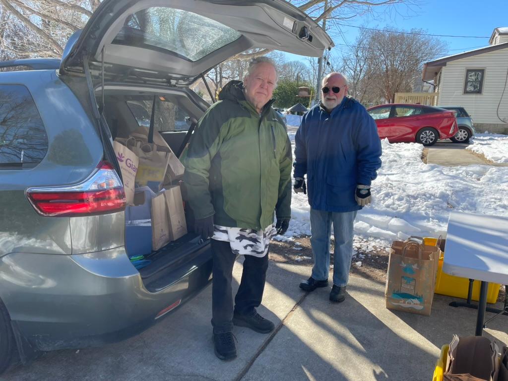 Braving the cold to deliver a whole SUV full of food items they collected from their Manhattan Beach neighborhood to the SPAN, Inc. pantry were Ron Aten and Rob Schuyler.