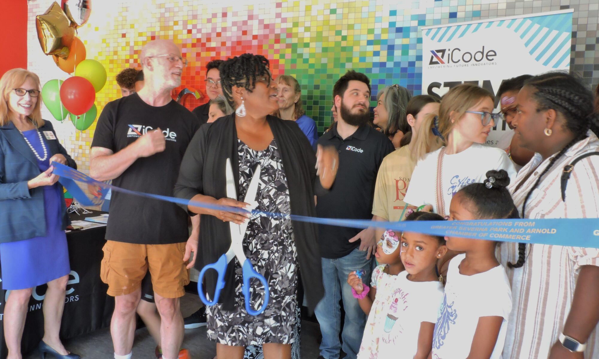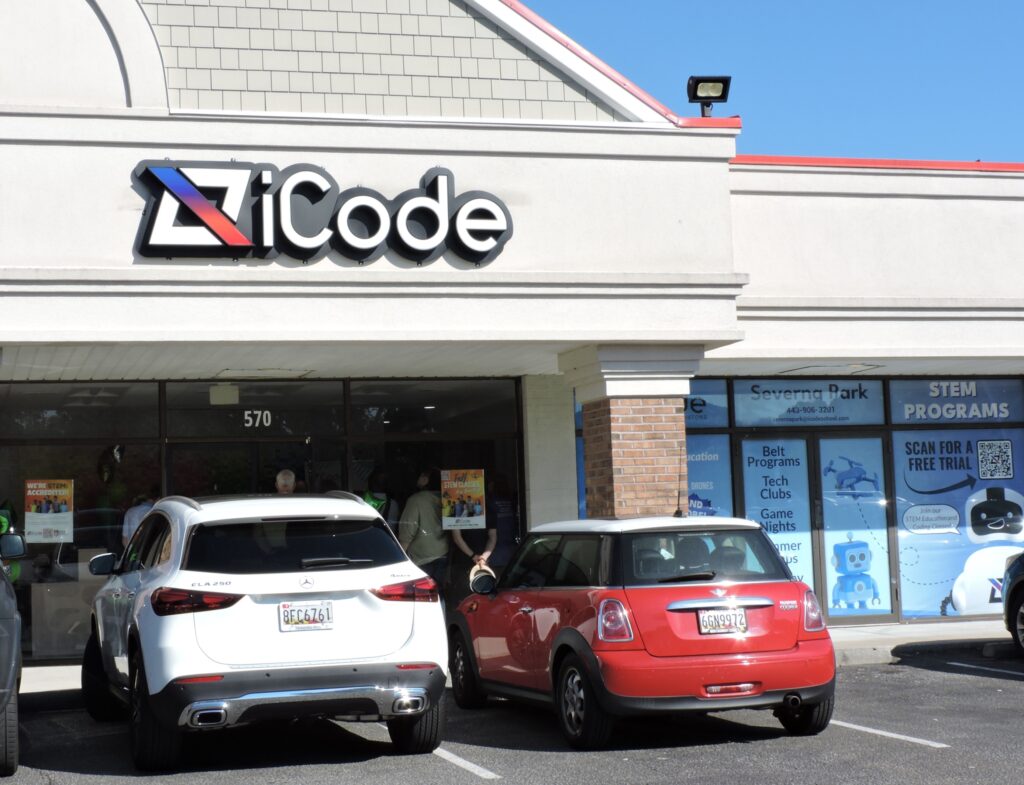 Kids are not always in the mix when a new business holds its Grand Opening. However, we spotted a number of children and teens at the August 14th opening of iCode Severna Park in the Benfield Village Shopping Center. Because iCode offers a comprehensive STEM (Science, Technology, Engineering, and Mathematics) education program for children, they came along with parents looking into the classes and camps offered by the company.