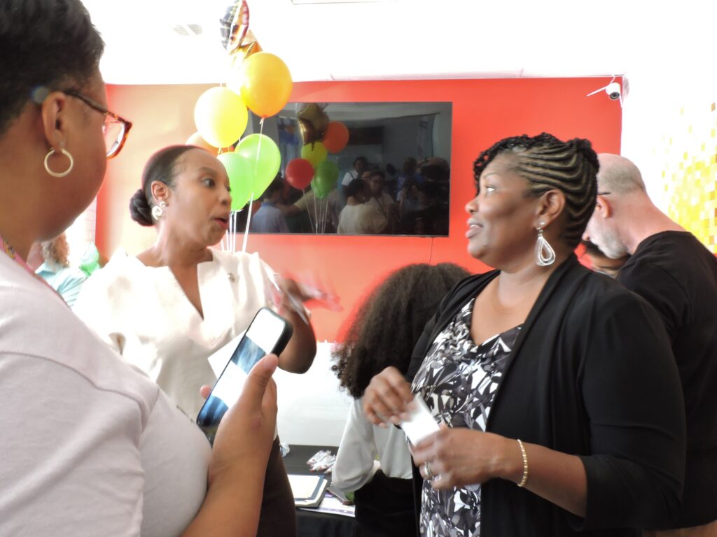 Initially, most folks chose to mingle. LaToya Nkongolo caught up with Sandra Sellers to congratulate her on the Grand Opening. We caught up to League for a chat during which she mentioned that Chamber members generally seem pleased that iCode has brought cutting edge technology training to Severna Park.