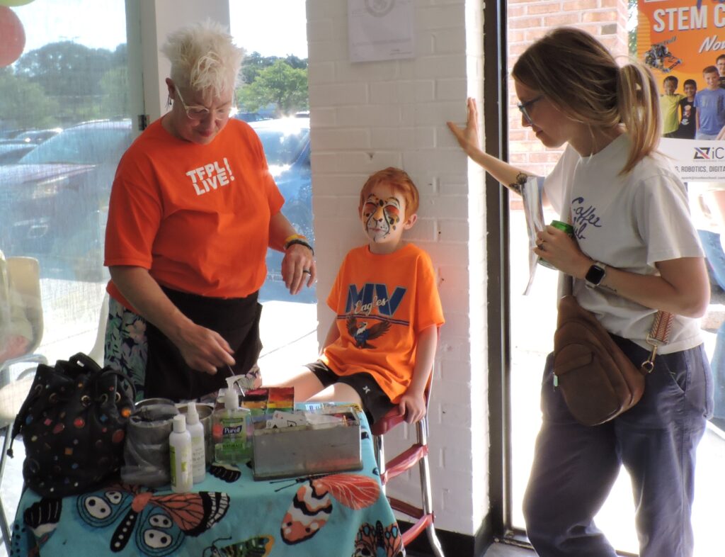 As we were about to follow Mark Sellers to the buffet area, we stopped for a moment to watch “The Face Paint Lady” Michelle who was busily applying a colorful mask to the face of young Caden as his mother Emily looked on.