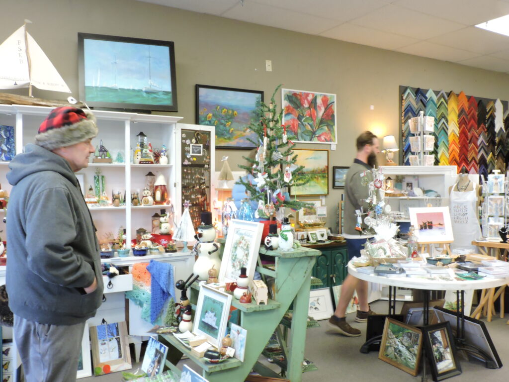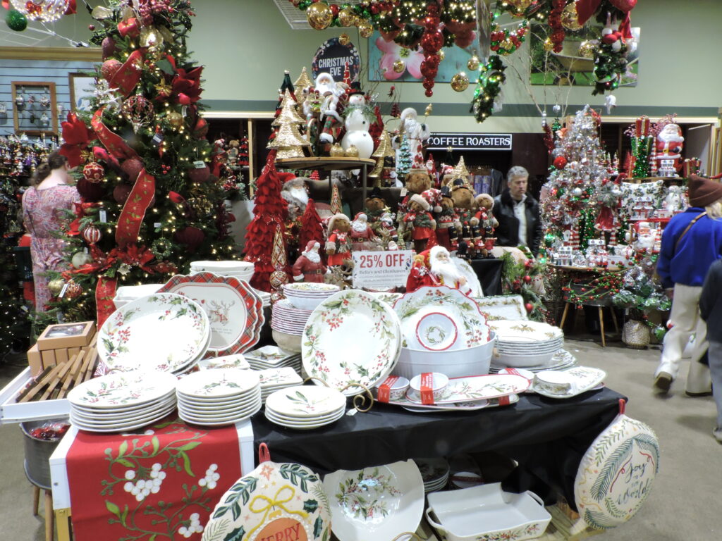 Always busy at this time of the year, Peaceful Petals flower shop employees were helping customers place orders or make their own bouquets from beneath a ceiling strung with giant-sized Christmas ornaments.