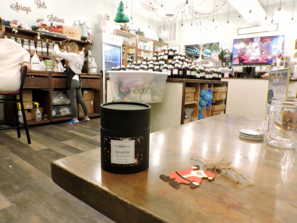 “I have to get back so I only have a few minutes to stay,” Bowen said. “We’re really busy with customers and classes. We’ve made a special “Spread The Joy” candle that we’re marketing in honor of this occasion. We’re donating all the proceeds from selling them to the foundation.”